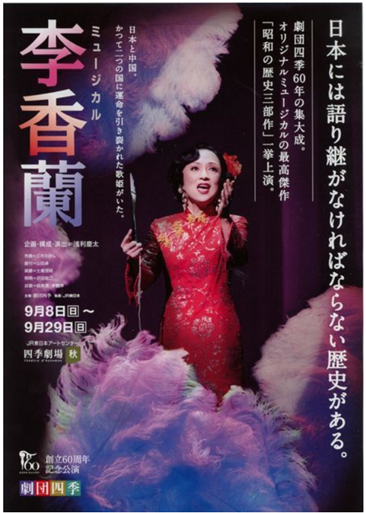 ところで初めて夜来香の名前を聞いた時、どこか懐かしい響きを覚えた。だがどうしてそのような気持ちを抱いたのかわからないまま長い時間が過ぎた。そして今回、夜来香について本稿を書き進めていく過程で、その理由が明らかになった。忘れかけていたが今から四半世紀近く前、東京で劇団四季のミュージカル「李香蘭(リコウラン、リシャンラン)」を鑑賞したことを思い出した。李香蘭の名を初めて知る人のために、劇団四季のHPから「ミュージカル 李香蘭」についての解説の一部を引用させていただく。